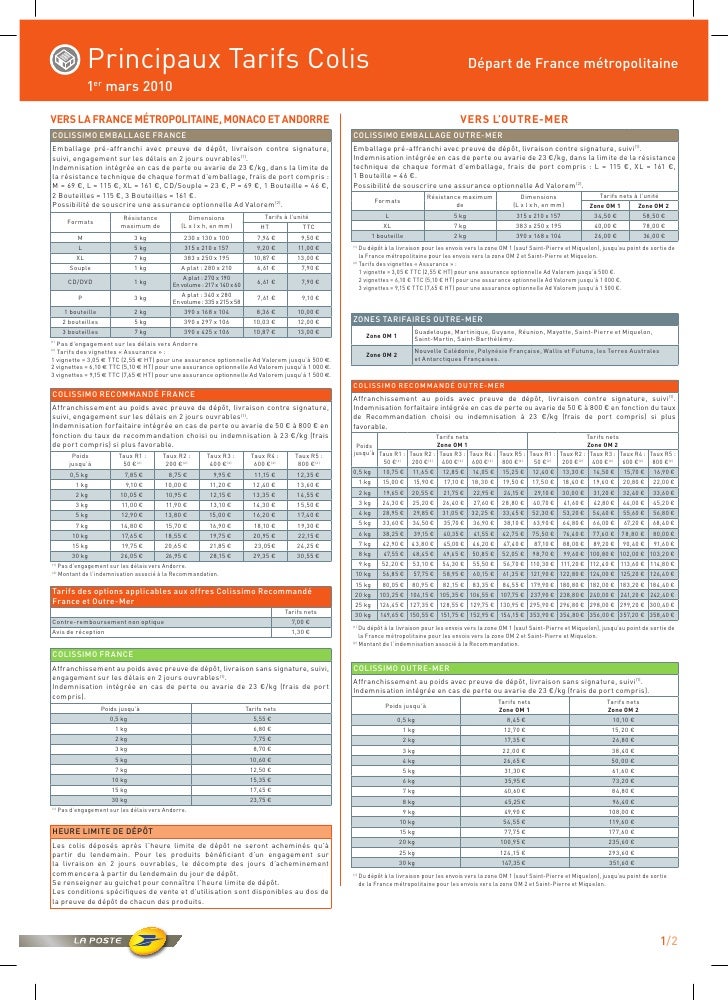 577 645 740 de 250 à 500 grammes. Tarif en vigueur au jour du dépôt sauf pour lemballage à affranchir vendu par La Poste au tarif en vigueur le jour de lachat.