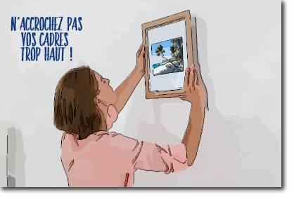 Les cadres sont bien souvent accrochés trop haut. La règle est simple il faut laccrocher par convention à environ 165m du sol par rapport au centre du tableau cest-à-dire à hauteur des yeux même si tout le monde na pas les yeux à la même hauteur. La hauteur idéale pour fixer un tableau au mur Voici quelques règles de base très simples à retenir.